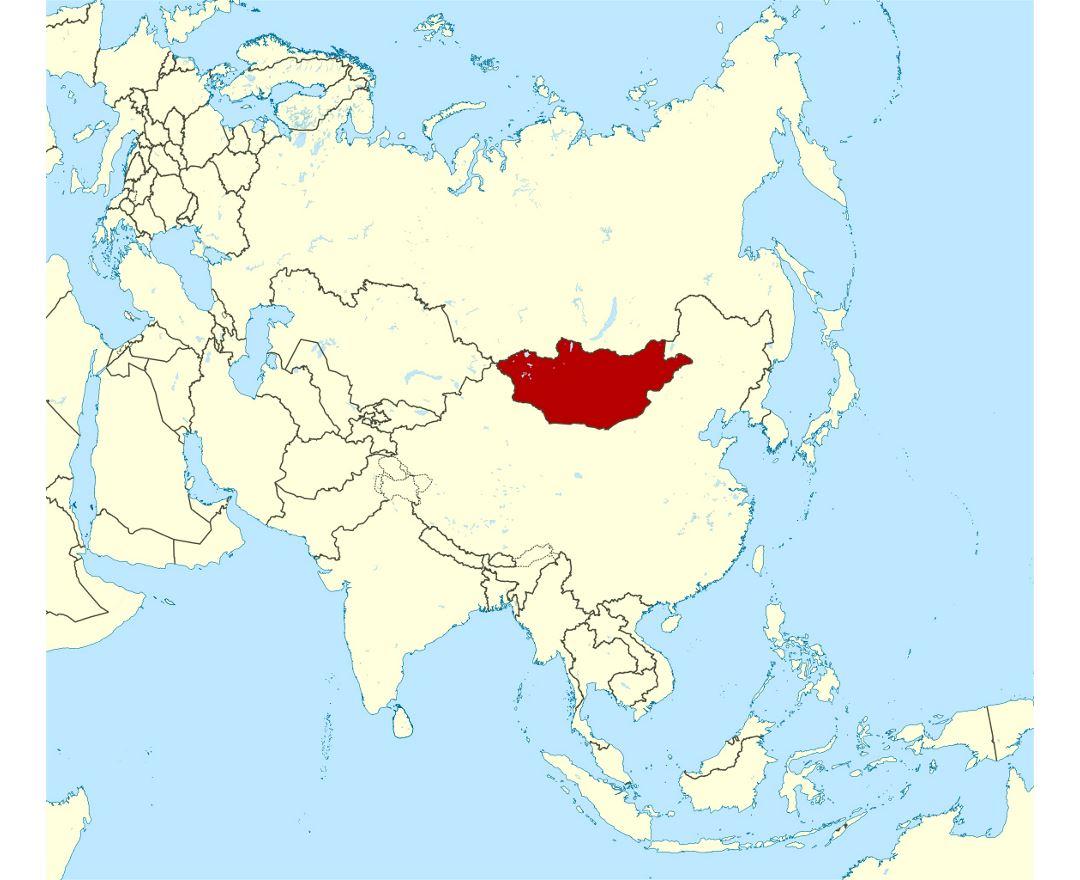 Location of Mongolia in world map. Mongolia location on world map (Eastern Asia - Asia) to print. Mongolia location on world map (Eastern Asia - Asia) to download.